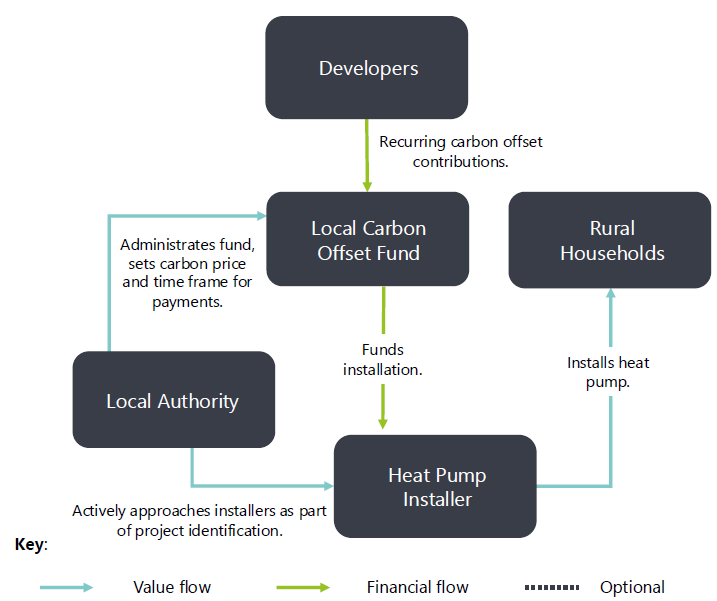 Alongside administering the fund collection and allocation, the local authority would also need to identify a suitable range of projects to be funded through the carbon offset fund, which would feature heat pump installations.