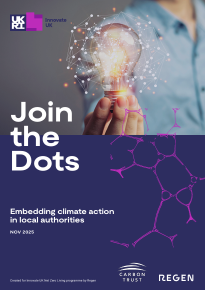 The Join the Dots report, developed under Innovate UK’s Net Zero Living Programme in partnership with Regen and the Carbon Trust, builds on the “Enable, Embed, Enact” framework to explore how embedding climate action across organisations enhances project delivery.