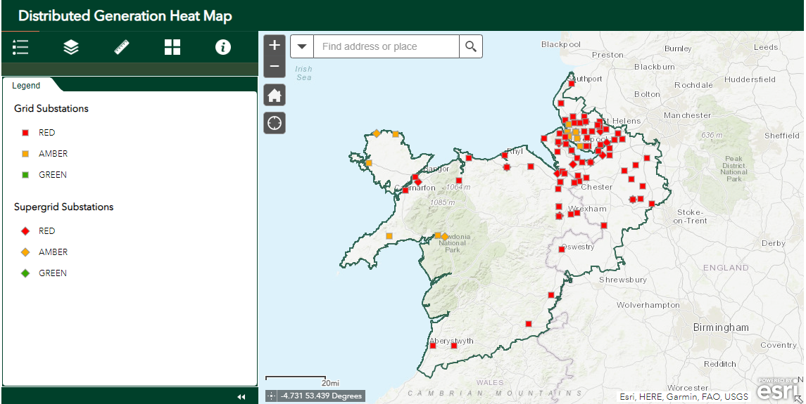 This SP Energy Networks application provides an indication of the potential opportunities to connect Distributed Generation (DG) to the 11kV, 33kV, and 132kV network in the SP Manweb plc licence area (Cheshire, Merseyside, N.Shropshire, N.Wales).
